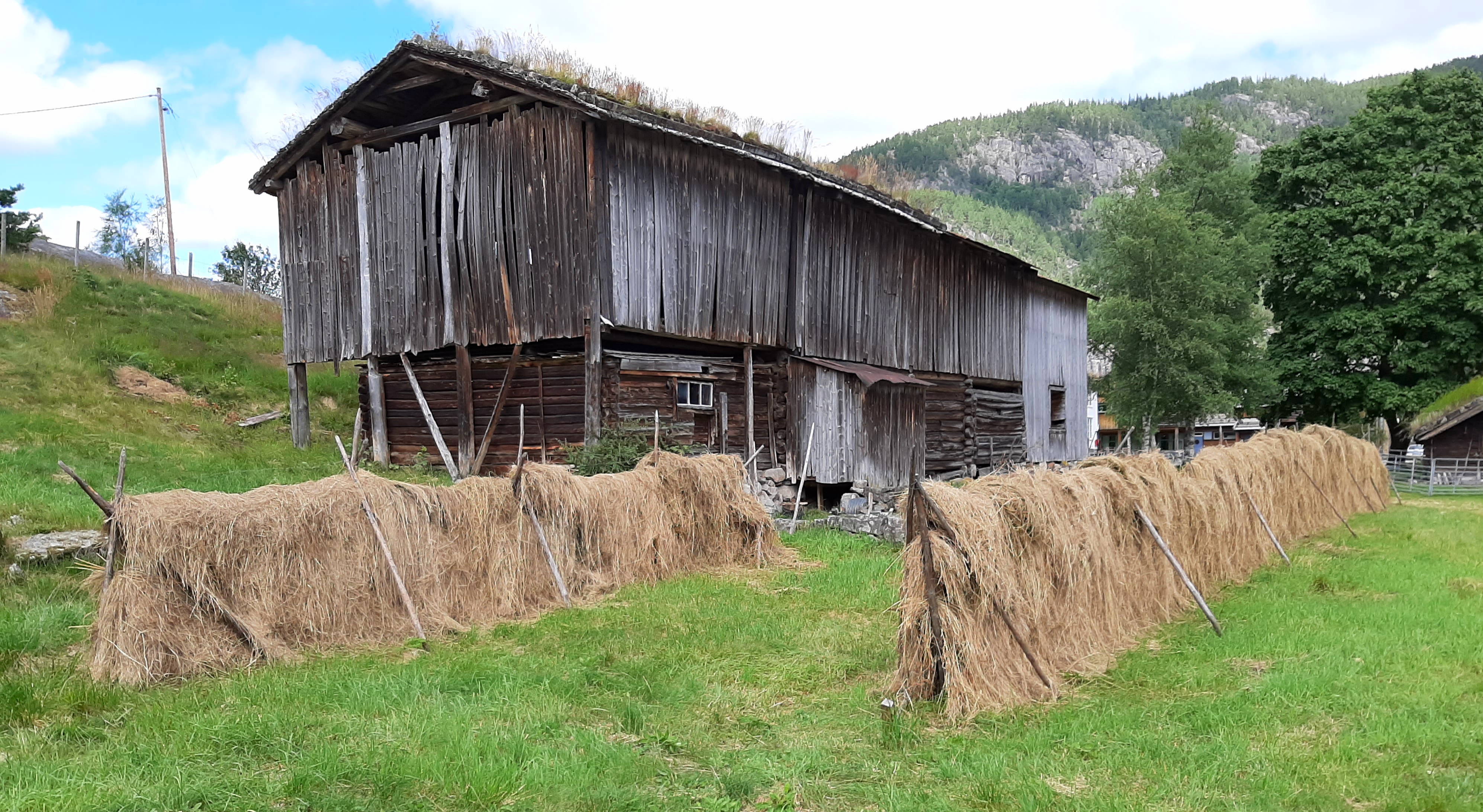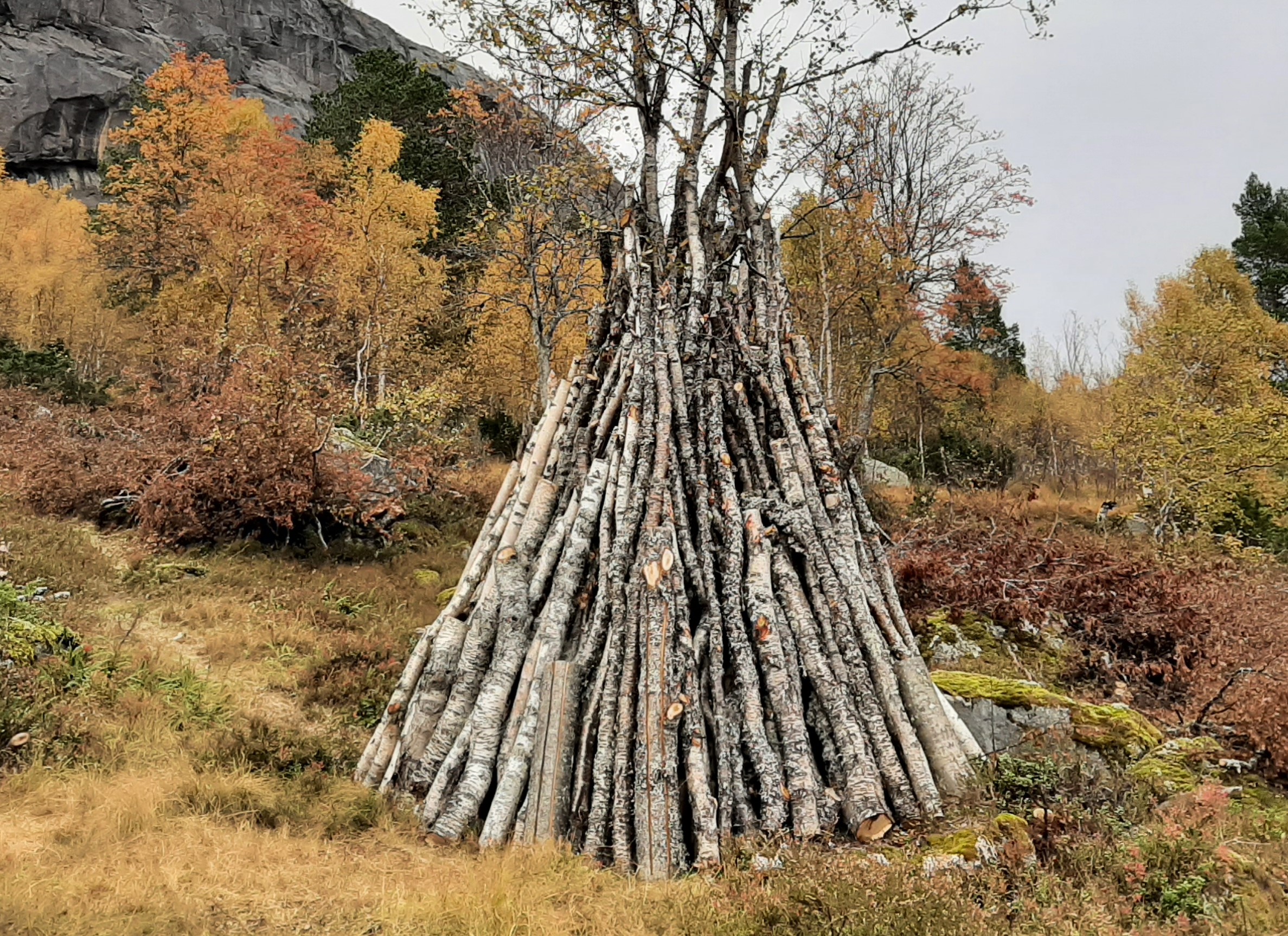vedstrangar som er sette greitt i hop ståande mot td tre eller steinSjå også <#1168#vé'ekost'e>.